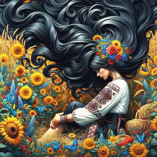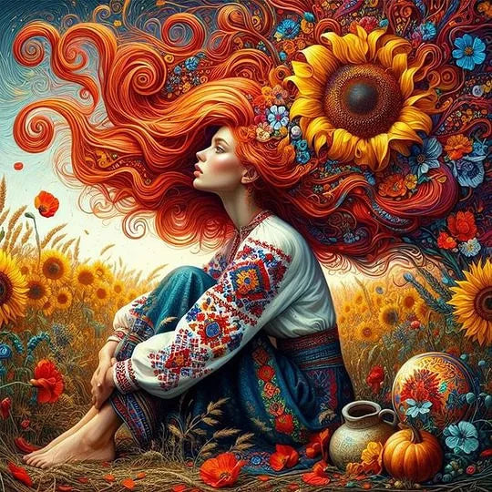 Pinturas de diamantes Mujer en un campo