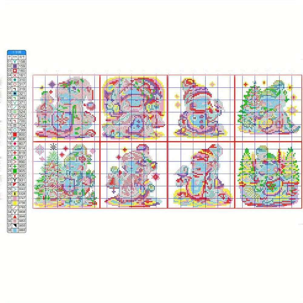 Kit de broderie en tissu imprimé bonhomme de neige, point de croix de noël, 11Ct, 8 pièces